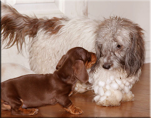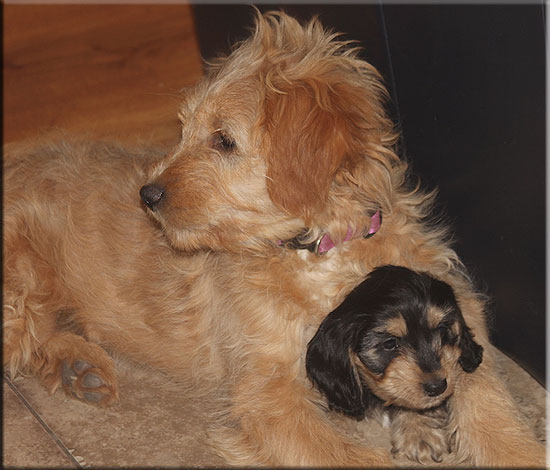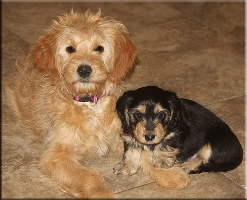 Athenea Mini Golden Doodle and buddy Mini Doxie