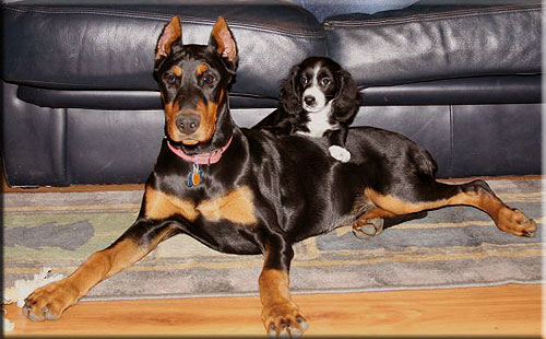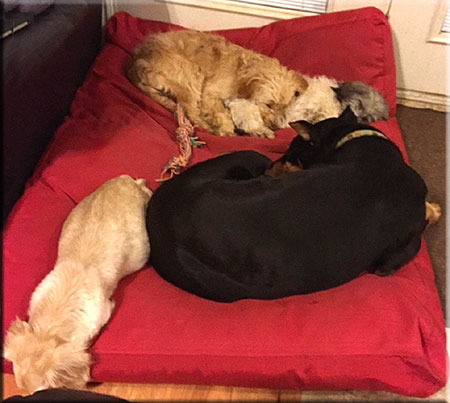 Doberman, 2 Doxies and a Golden doodle