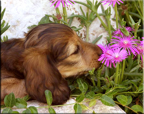 Dachshund Wisdom: "Be Sure to Stop and Smell the Flowers...