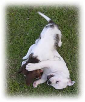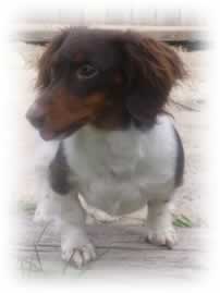 Farfel Choc Tan Longhair Piebald By Dolly and Buck And Lucy the Wire Fox Terrier Owned by the Larson Family of UT